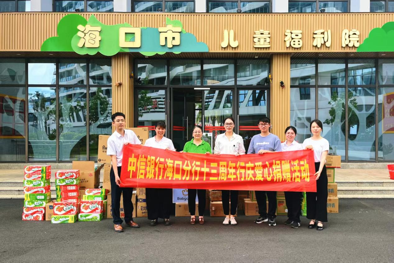在中信銀行??诜中惺苣晷袘c和國際“六一”兒童節(jié)來臨之際,該行組織開展了“迎行慶,獻愛心”主題捐贈活動,在分行團委的號召下,全行員工主動響應、各單位積極組織,通過物資捐贈與金融知識普及相結合的形式,為??谑猩鐣@旱膬和扒嗌倌晁腿ス?jié)日的關愛與支持,以實際行動踐行金融機構的社會責任。