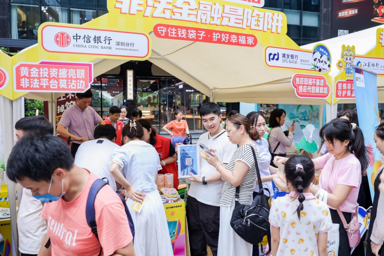 為認(rèn)真貫徹落實(shí)國(guó)家防范和打擊非法金融活動(dòng)部際聯(lián)席會(huì)議辦公室部署要求,強(qiáng)化黃金交易領(lǐng)域風(fēng)險(xiǎn)防控,規(guī)范金融市場(chǎng)秩序,在國(guó)家金融監(jiān)督管理總局深圳監(jiān)管局、深圳市地方金融管理局的指導(dǎo)下,由深圳市銀行業(yè)協(xié)會(huì)主辦,深圳市居民金融素養(yǎng)提升工程辦公室、羅湖區(qū)發(fā)展和改革局、翠竹街道辦事處支持的“守住錢袋子·護(hù)好幸福家”2025年防范非法金融活動(dòng)集中教育活動(dòng)于6月15日在羅湖區(qū)成功舉辦。中信銀行深圳分行作為成員單位,與全市多家銀行機(jī)構(gòu)攜手,依托專業(yè)金融服務(wù)優(yōu)勢(shì),通過創(chuàng)新教育形式與深度知識(shí)普及,為市民筑牢黃金投資安全防線。