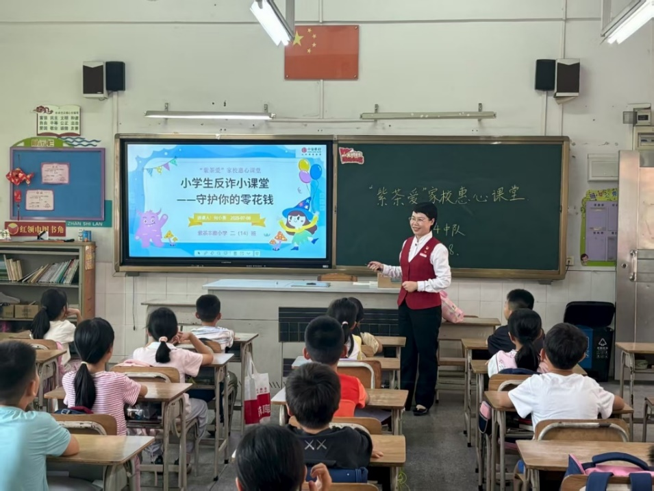 近日,中信銀行江門分行走進(jìn)江門市紫茶豐雅小學(xué)的惠心課堂,以“金融+反詐”的創(chuàng)新形式,圍繞“小學(xué)生反詐小課堂——守護(hù)你的零花錢”的主題,開展了一場(chǎng)生動(dòng)實(shí)用的金融反詐知識(shí)授課,為孩子們普及防騙知識(shí)。