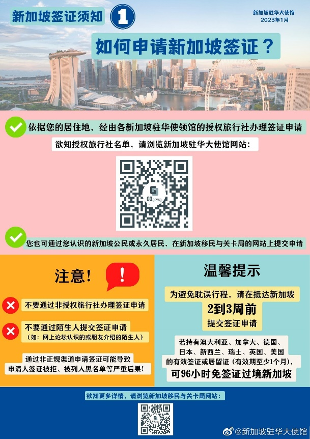 打算到新加坡去旅游、探親嗎?關注新加坡駐華大使館的官方微博,新加坡簽證須知系列讓您安心出游不踩坑!